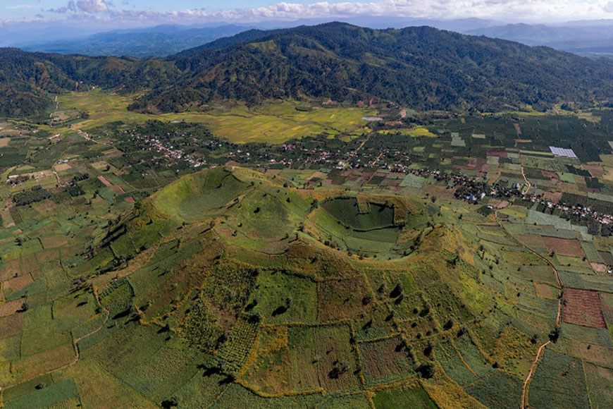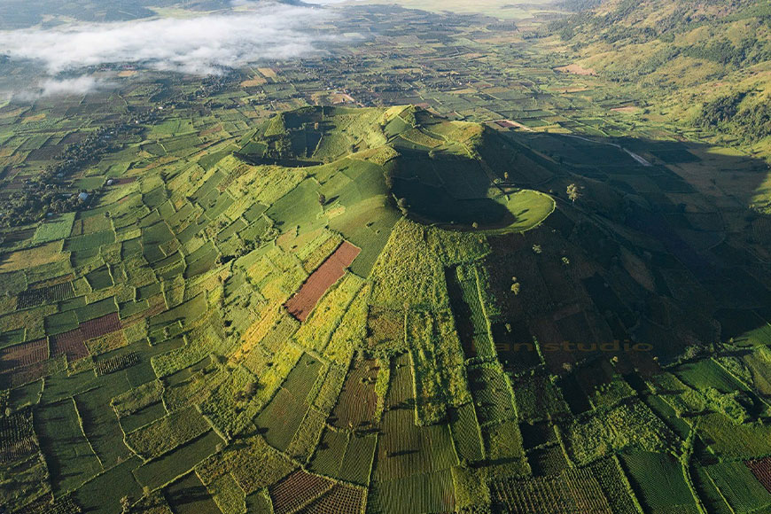 Dưới lớp đất đỏ bazan dày đặc và những thảm hoa dã quỳ rực rỡ ngày nay, Núi lửa Chư Đăng Ya từng là một cỗ máy tự nhiên khổng lồ, phun trào cuồng nhiệt cách đây hàng triệu năm. Sau khi ngừng hoạt động, ngọn núi để lại một lòng chảo sâu và vách núi hình phễu độc đáo. Dòng dung nham ngày trước giờ đây đã hóa thân thành những lớp đất bazan màu mỡ, nuôi dưỡng những cánh đồng khoai, gừng, ngô và hoa màu đặc trưng của vùng đất Tây Nguyên.