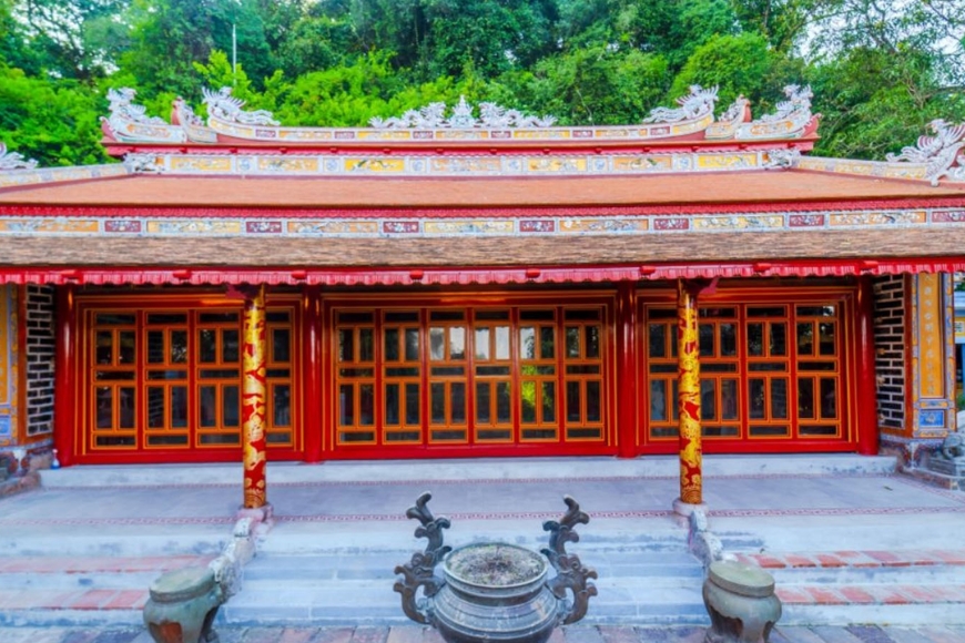 - Đường bộ dẫn đến điện khá hẹp và có phần nguy hiểm, vì vậy bạn nên chọn đi bằng thuyền trên sông Hương để đảm bảo an toàn. Hơn nữa, hành trình trên sông sẽ mang đến cho bạn những trải nghiệm thú vị và thơ mộng.