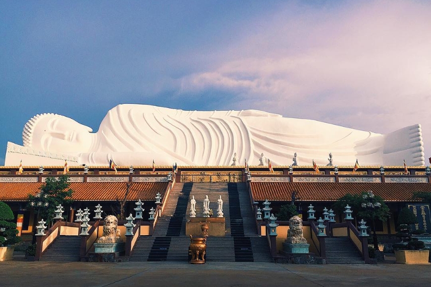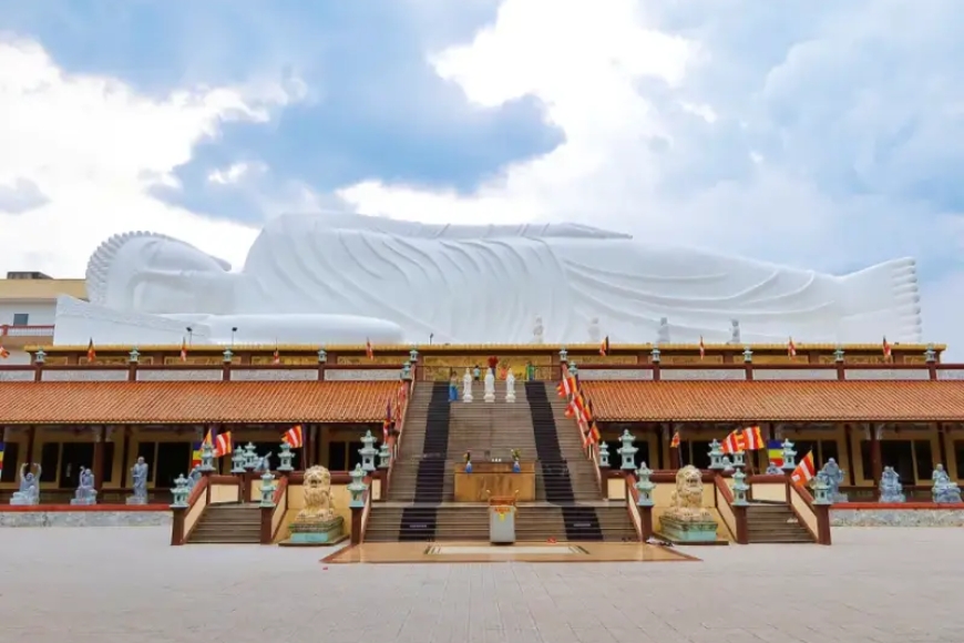 Điểm nhấn đặc biệt nhất của chùa là pho tượng Phật nhập Niết Bàn dài 52m – được xác lập là tượng Phật nằm dài nhất châu Á trên mái chùa, thể hiện sự kết hợp hài hòa giữa yếu tố tâm linh và nghệ thuật kiến trúc. Tác phẩm này không chỉ có giá trị tôn giáo sâu sắc mà còn là minh chứng cho sự phát triển của mỹ thuật Phật giáo Việt Nam.
