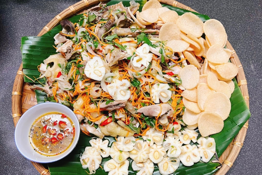 Không giống những món gà truyền thống như luộc hay nướng, gỏi gà măng cụt mang đến trải nghiệm vị giác mới lạ với sự kết hợp hài hòa giữa thịt gà mềm dai và măng cụt tươi ngọt thanh. Măng cụt được gọt vỏ, cắt lát mỏng, còn thịt gà được xé nhỏ, sau đó trộn đều cùng nước mắm chua ngọt, chút muối tiêu và rau răm. Tất cả tạo nên món gỏi vừa đậm đà vừa thanh mát, có đủ vị chua, ngọt, mặn và cay nhẹ, rất thích hợp để thưởng thức trong những ngày nắng nóng.