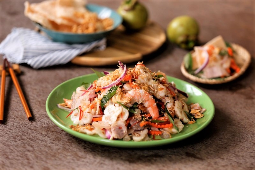 Gỏi ngó lục bình tôm thịt là một trong những đặc sản nổi tiếng của TP.HCM được rất nhiều thực khách yêu thích. Món ăn này gây ấn tượng bởi sự giòn ngon của ngó lục bình hòa quyện cùng thịt ba rọi lụa mềm ngọt và tôm sú tươi rói. Nước mắm chua ngọt đậm đà với vị cay nhẹ càng làm tăng thêm hương vị đặc trưng, tạo nên sự cân bằng hoàn hảo giữa các yếu tố mặn ngọt, béo bùi và chua cay.