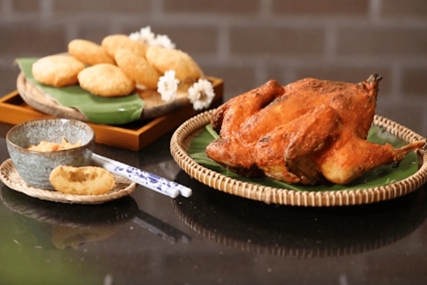 Gà nướng sầu riêng là một trong những đặc sản nổi bật của TP.HCM khiến du khách không khỏi tò mò ngay từ tên gọi. Nghe có vẻ lạ tai bởi sự kết hợp giữa thịt gà và sầu riêng, nhưng đây lại là món ăn trứ danh được nhiều người yêu thích tại vùng đất trù phú trái cây này. Gà sau khi tẩm ướp gia vị và hòa quyện cùng lớp sầu riêng béo ngậy sẽ được nướng trên bếp than hồng cho đến khi da vàng giòn, tỏa hương thơm ngào ngạt. Khi thưởng thức, thực khách sẽ cảm nhận được vị ngọt đậm đà của thịt gà cùng mùi thơm đặc trưng của sầu riêng thấm đều từng thớ thịt, tạo nên một trải nghiệm ẩm thực vô cùng đặc biệt.