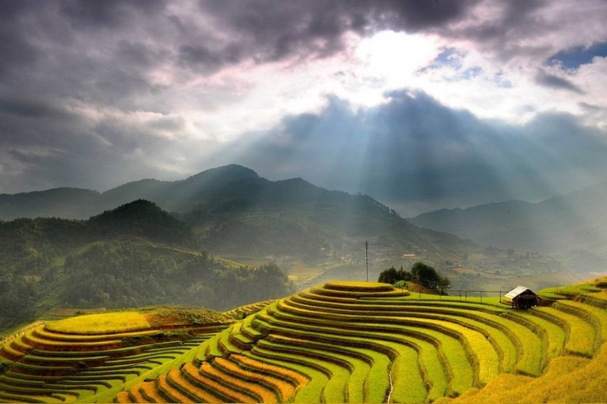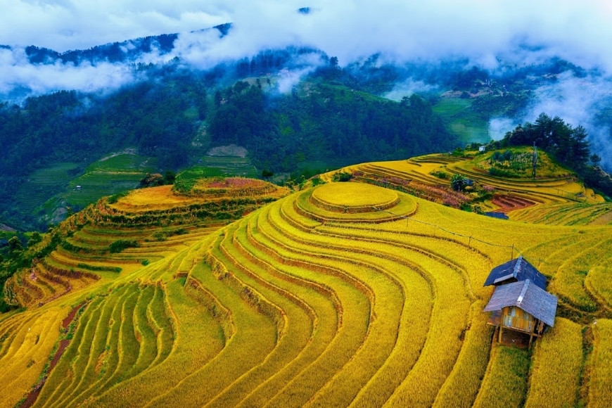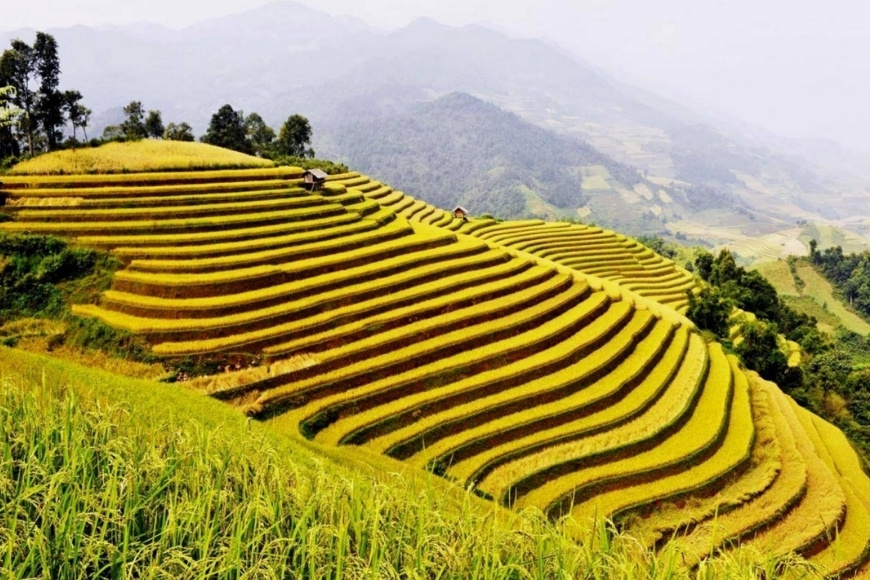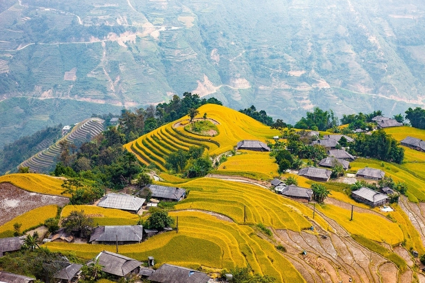Hoàng Su Phì từ lâu đã được coi là “thủ phủ” ruộng bậc thang của vùng núi phía Bắc. Vào mùa lúa chín, nơi đây như khoác lên mình tấm áo vàng trải dài bất tận từ thung lũng lên đến tận sườn núi. Những thửa ruộng uốn lượn quanh co, xếp tầng tầng lớp lớp tạo nên bức tranh thiên nhiên sống động, vừa hùng vĩ vừa thơ mộng.
