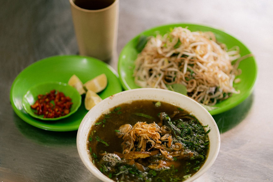 Nước dùng ninh từ xương lươn cùng các loại củ như hành, gừng, và gia vị, mang lại vị ngọt tự nhiên. Miến dong – loại miến được làm thủ công từ củ dong riềng – được trụng sơ qua nước sôi, sau đó chan nước dùng nóng hổi.