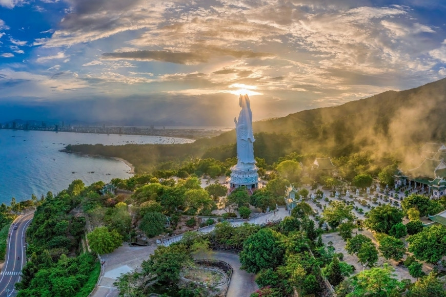 Trên đường lên bán đảo, bạn không thể bỏ qua Chùa Linh Ứng, nơi có tượng Phật Bà Quan Âm cao 67 mét, một biểu tượng tâm linh nổi bật của Đà Nẵng. Tượng Phật Bà đứng uy nghi giữa cảnh sắc núi rừng và hướng ra phía biển, mang lại cảm giác an yên và thanh tịnh cho du khách đến đây.