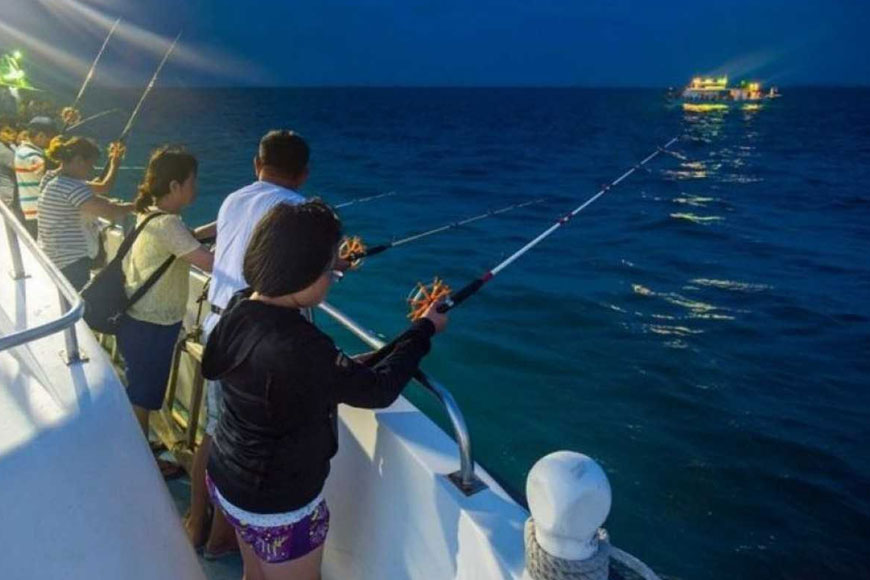 Sau bữa tối, bạn có thể tham gia các hoạt động thú vị như câu mực đêm hoặc đi dạo quanh bờ biển nếu bạn chọn lưu trú tại khách sạn.