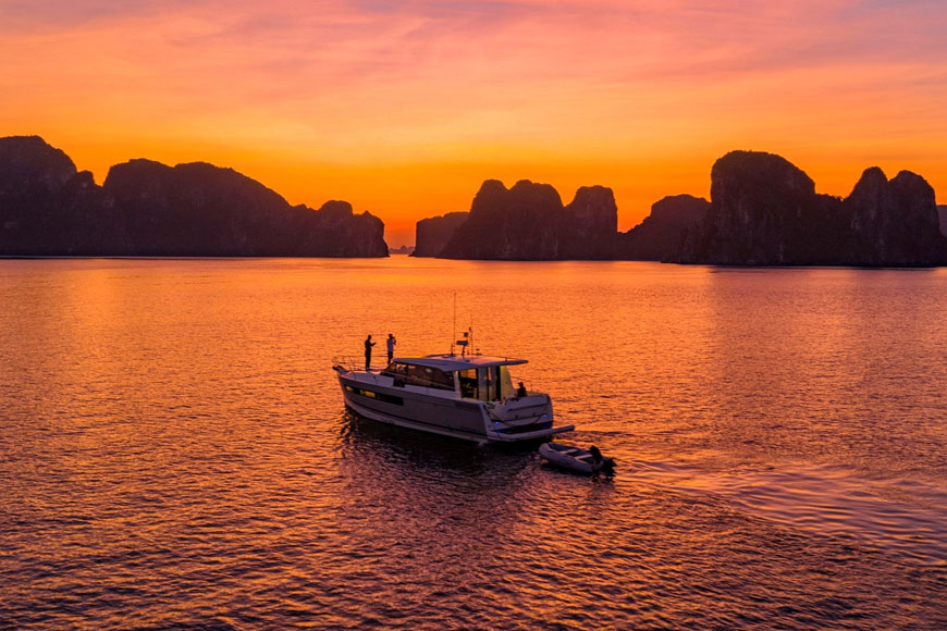 Bắt đầu ngày mới bằng việc thức dậy sớm, tận hưởng không khí trong lành và chiêm ngưỡng khung cảnh bình minh tuyệt đẹp trên Vịnh Hạ Long