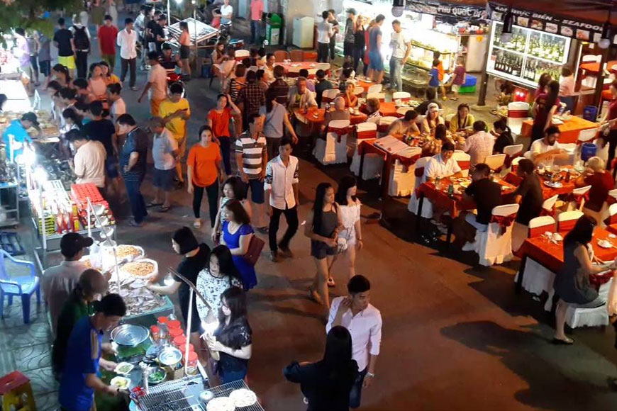Kết thúc ngày dài bằng việc dạo chợ đêm Dinh Cậu – một trong những điểm đến nhộn nhịp và thú vị nhất tại Phú Quốc. Đây là thiên đường ẩm thực với hàng loạt món ngon như nhum nướng mỡ hành, sò điệp nướng, bánh khéo, hay kem dừa mát lạnh. Ngoài ra, bạn cũng có thể mua sắm quà lưu niệm, đặc sản địa phương như mắm ruốc, rượu sim, hoặc các món đồ thủ công tinh xảo.