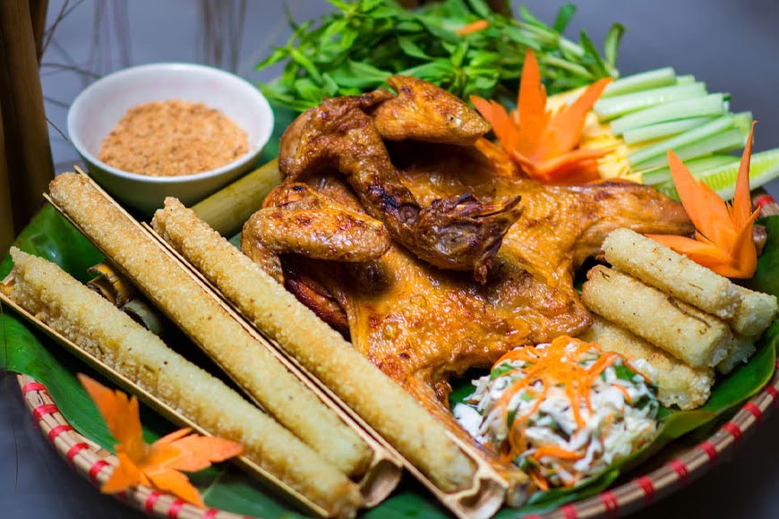 Gà bản nướng: Gà được ướp với các loại gia vị núi rừng, sau đó nướng trên than hoa, mang lại hương vị khó quên.