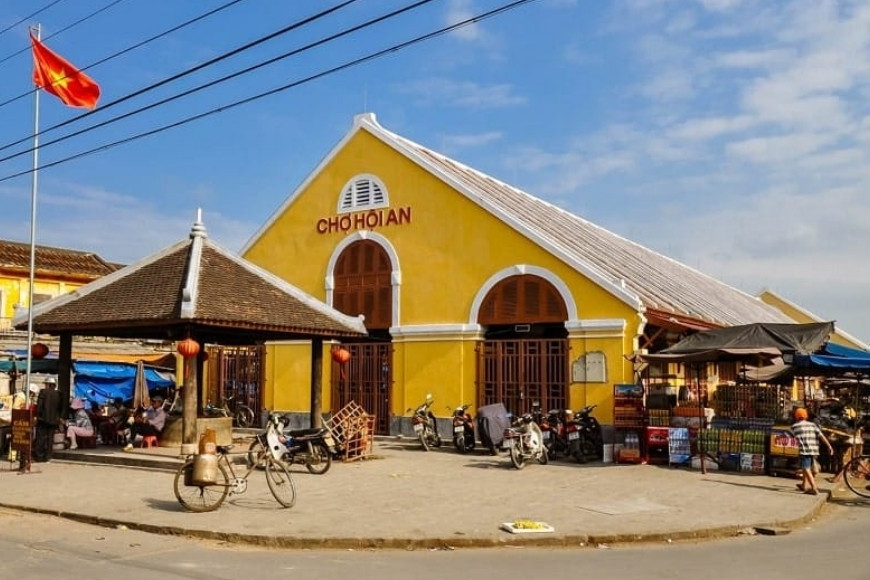 Từ Hội quán Phúc Kiến, chỉ mất vài phút đi xe máy để đến chợ Hội An – nơi hội tụ tinh hoa ẩm thực địa phương. Bạn có thể đậu xe gần khu vực chợ và đi bộ vào khám phá những gian hàng đầy màu sắc. Chợ Hội An là điểm đến tuyệt vời để thưởng thức các món ăn đặc sản như cao lầu, mì Quảng, và các loại bánh địa phương.