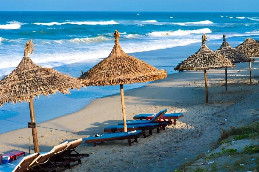 Từ làng rau Trà Quế, bạn chỉ cần di chuyển thêm khoảng 5km bằng xe máy để đến biển An Bàng. Đây là một trong những biển đẹp nhất ở Hội An, với bãi cát trắng mịn và làn nước trong xanh. Tại đây, bạn có thể dừng xe, tấp vào để thưởng thức hải sản tươi ngon ở các quán ăn ven biển, tham gia các hoạt động giải trí như bơi lội, lướt sóng hoặc chỉ đơn giản là ngồi thư giãn trên những chiếc ghế dài và ngắm hoàng hôn.