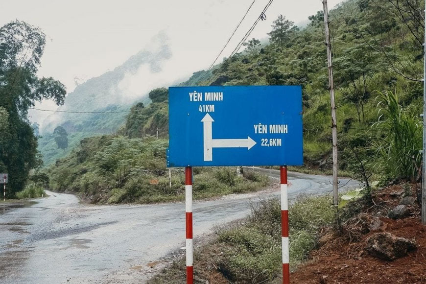 Lưu ý quan trọng: Khi đi qua Quản Bạ và cầu Cán Tỷ, bạn sẽ gặp biển chỉ dẫn rẽ hai hướng: một hướng chỉ đến Yên Minh 22,6 km và một hướng đến Yên Minh 41km. Để đến rừng thông Yên Minh, bạn cần rẽ theo hướng 41km. Nếu bạn rẽ theo hướng còn lại (22,6km), bạn sẽ không đến được rừng thông mà sẽ dẫn bạn đến Cây cô đơn nổi tiếng của Tuyên Quang.