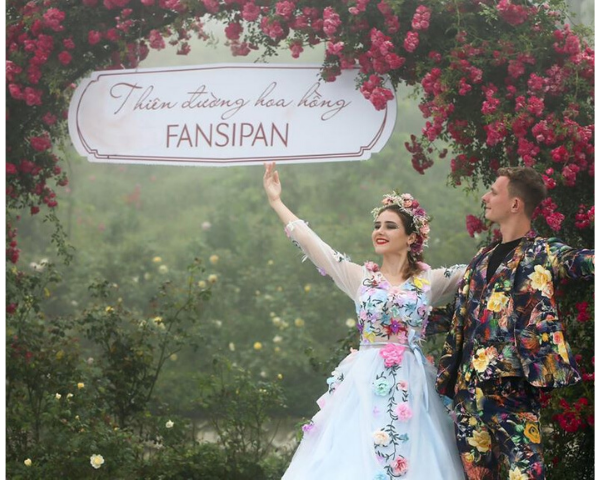 Vườn hoa trung tâm trên Núi Hàm Rồng là một "thiên đường hoa" thực sự, nơi mà hàng trăm loài hoa đua nhau khoe sắc rực rỡ. Đặc biệt, các nghệ nhân đã khéo léo xếp hoa thành chữ “SAPA” ngay giữa khu vườn, tạo nên một cảnh quan độc đáo, đậm chất nghệ thuật. Những giống hoa nhập khẩu từ Pháp, Nga, Nhật Bản như cẩm tú cầu, hoa loa kèn, hay hồng ri, khiến khu vườn nhuốm “vibe” Châu Âu đầy thanh lịch và lãng mạn.