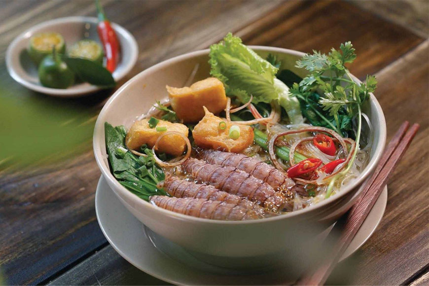 - Bún bề bề: Bún nấu từ bề bề (tôm tích) tươi ngon, thơm ngọt, ăn cùng rau thơm và nước dùng đậm đà.