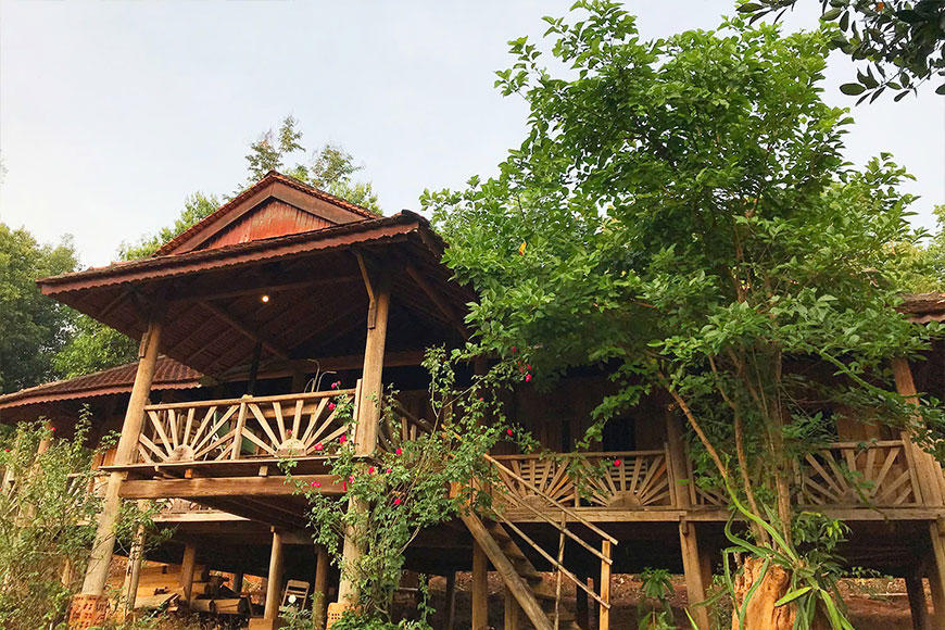 Những căn nhà sàn đơn sơ đã được người dân chuyển đổi thành các homestay thân thiện, giữ nguyên lối sinh hoạt truyền thống. Du khách được ngủ trên sàn gỗ, quây quần bên bếp lửa, nghe kể chuyện làng cổ và thức dậy giữa tiếng gà gáy hòa vào tiếng nước róc rách ven sông.
